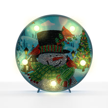 Runde Lampe mit Diamantmalerei – Schneemann mit Vögeln